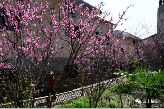 漫山遍野的桃花层层叠叠,如云似霞,春意盎然的哈尼小镇美不胜收