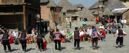 哈尼族铓鼓舞是哈尼族在传统节日“昂玛突”上跳的一种祭祀舞蹈。舞蹈雄浑豪放,气势轩昂,质朴劲健,热情洒脱,表现出了哈尼人大山一样的性格,森林一样的情怀。铓鼓舞产生于哈尼族以狩措为生的古代。人们为了在狩猎时进行联络和邀约猎手,由无意中发现打击山中空心树会发出响声,于是他们用原木凿空绷上牛皮,做成了鼓。鼓声除进行联络和邀约猎手外,有时也可以轻轻地敲击起到吸引猎物的作用,若是单身或人少而碰到猛兽时,急风暴雨似的击打又可以起到口下跑野兽防身自卫的作用。那古朴、深沉、凝重、韵律非凡而神秘的舞姿将围观者的思绪带到了远古时代的哈尼部落,亲眼目睹哈尼先民们与大自然英勇抗争。随着社会的发展,他们又模仿农业生产的农耕动作,使铓鼓舞得到了丰富的发展,特别是铜的发现和利用,开始有了铓,成了名副其实的铓鼓舞。