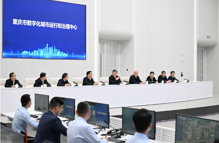 23日上午,习近平考察了重庆市数字化城市运行和治理中心,听取当地加快城市数字化转型、探索超大城市治理新路等情况汇报,观看系统应用演示。习近平指出,治理体系和治理能力现代化是中国式现代化的应有之义。强化数字赋能、推进城市治理现代化,要科学规划建设大数据平台和网络系统,强化联合指挥和各方协同,切实提高执行力。城市治理涉及方方面面,首要的是以“时时放心不下”的责任感,做好预案、精准管控、快速反应,有效处置各类事态,确保城市安全有序运行。希望你们不断探索,积累新的经验。