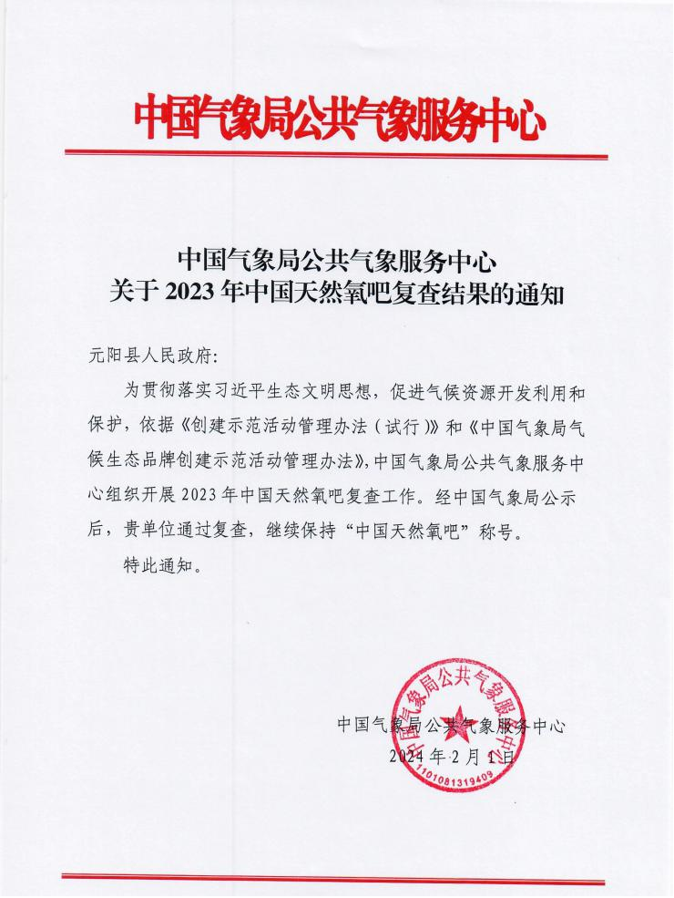 近日,2023年度“中国天然氧吧”复查结果公布,元阳县顺利通过复查,继续保持“中国天然氧吧”称号。