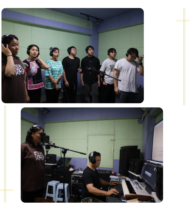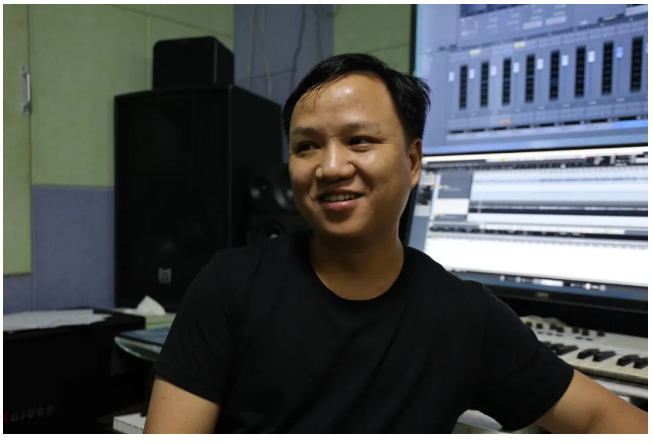 “歌词出来以后,我们就开始作曲,曲子基本成型后,歌曲就以流行+本地特有的傣族旋律和傣族特有的噶光音乐的方式来进行编曲制作,在制作过程中,为了能把歌曲氛围点提到最高,修改了无数次录制的时间,为了歌曲里能保留傣族特有的民族语音,我们这次录音的大部分演员都选了傣族,经过三个星期的紧张制作,终于做出了现在大家听到的《万傣哩》。”元阳县音舞家协会理事、《万傣哩》作曲编曲、录音师杨绍勇介绍。