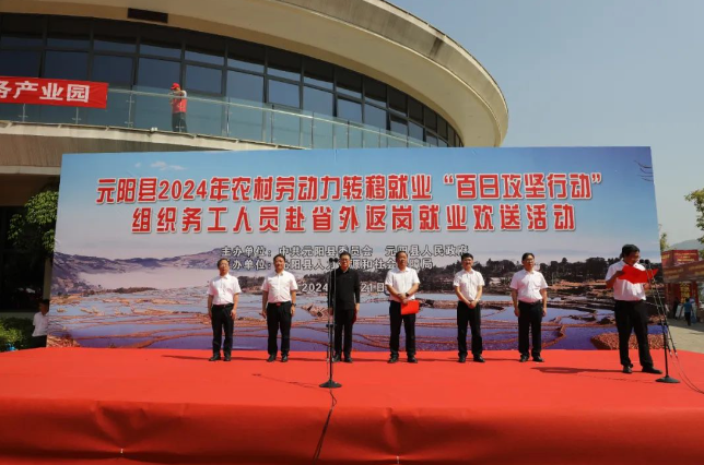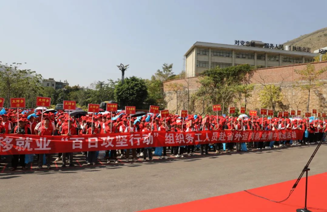 2月21日下午,元阳县举行2024年农村劳动力转移就业“百日攻坚行动”,欢送2499名务工人员搭乘“直通车”赴省外返岗就业。