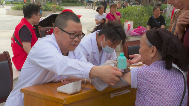 活动现场,人流如潮,工作人员在广场中央拉挂横幅、摆摊设点,为市民讲解筹款活动的内容和意义,并发放宣传册、赠送小礼品,动员广大群众积极参与和支持公益事业,同时为市民提供测血压、量血糖等义诊服务,吸引了各族群众踊跃参与,现场气氛热烈。