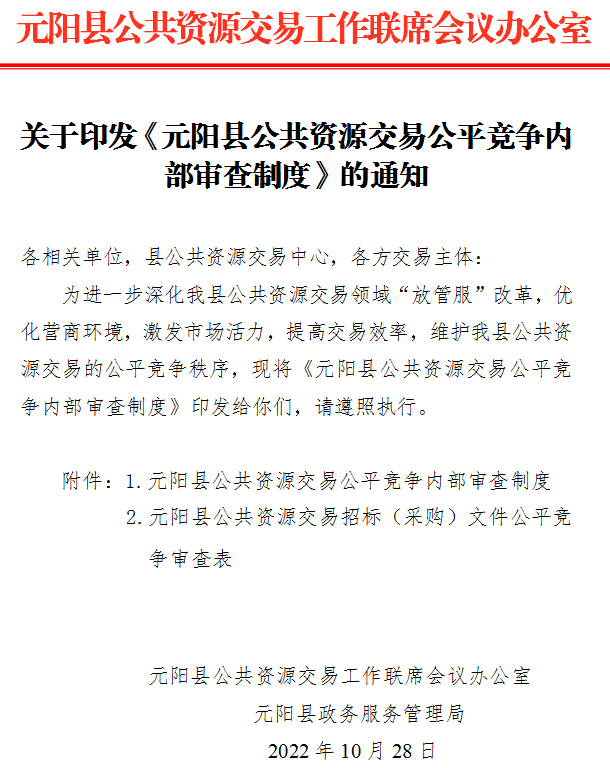 元阳县公共资源交易招标(采购)文件公平竞争审查表