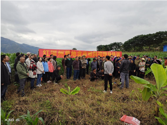 培训采取病虫害防控现场培训与会议集中交流发言两种方式开展。11月22日下午,在元阳县南沙镇呼山村和赛刀村分别开展了草地贪夜蛾病虫害防控和红火蚁防控及植物检疫宣传现场培训会,111户农户参与现场培训。州植保植检站技术员就草地贪夜蛾、红火蚁等重大病虫害防控技术进行了现场讲解及示范防控,对植物检疫进行了现场宣传。培训会后向农户发放了草地贪夜蛾防控药品和红火蚁防控药品,确保农户能及时开展病虫害防控,减少病虫害造成的损失,保障农业生产和粮食安全。