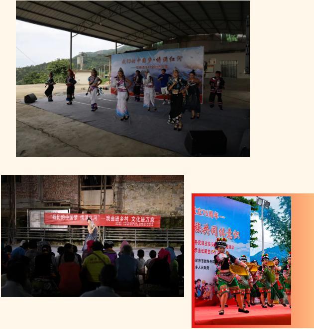 文化科技卫生“三下乡”示范活动是服务基层、服务“三农”的重要惠民活动。近年来,元阳县民族歌舞团坚持“文化乐民、科技利民、卫生惠民”的工作导向,将优质文艺节目与先进科学技术、贴心医疗服务带入乡村,真正做到“常下乡、常在乡”“常亲民、常为民”,有效提升了人民群众的幸福感。全年共举办各类演出88场,线下观看人数达4万余人次,部分演出进行直播,线上浏览人数达万余人次,有力传播了元阳县的民族文化。