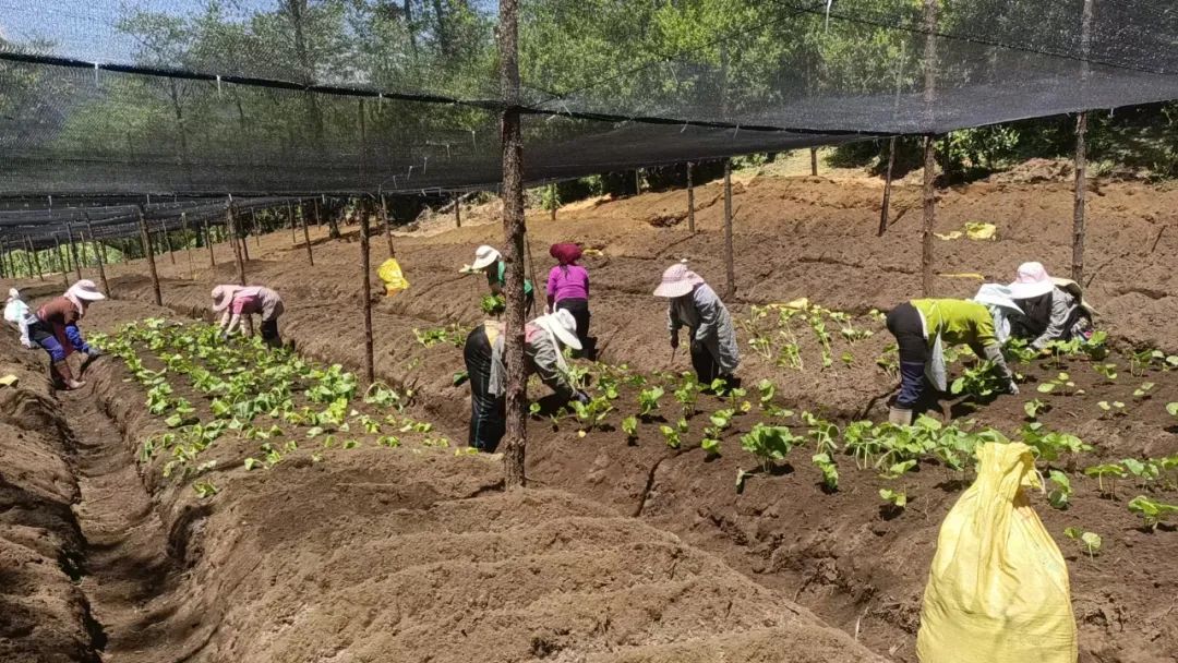 初夏时节,小新街乡者台村委会田间地头,遮阴网下山葵郁郁葱葱,迎来丰收。农户们穿梭其间,熟练采收,欢声笑语中洋溢着丰收的喜悦。