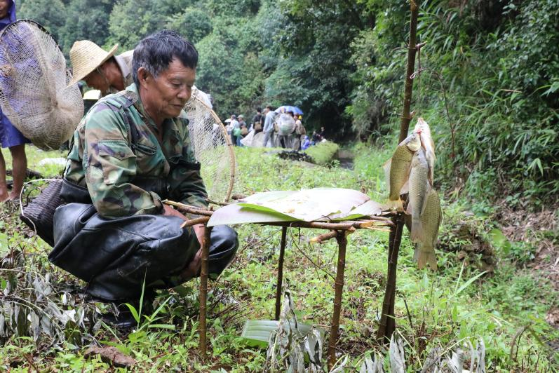 祭祀仪式上,祭司端举米酒,吟诵着古老的祝词,此时,细密的雨声与祝词相互交融,更添几分庄重与神秘。年轻的哈尼族小伙将鲜活的鲤鱼敬献给先祖,以此感恩自然的慷慨馈赠以及各族群众互助带来的丰收年景。村旁的鱼塘边早已人头攒动,大家都翘首以盼捞鱼活动的开启。
