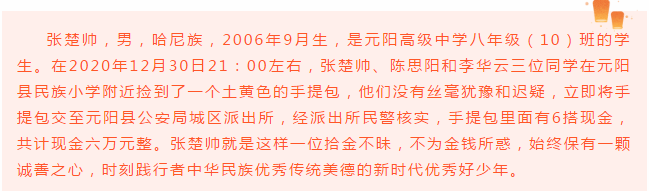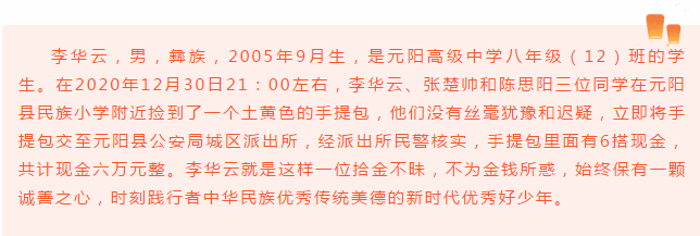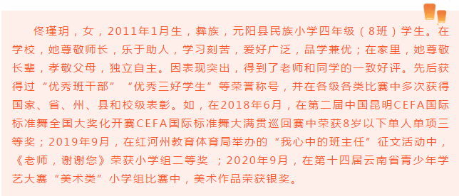 根据红河州文明办《关于组织开展2021年“新时代红河好少年”推荐学习宣传活动的通知》安排,为培育和践行社会主义核心价值观,推出一批事迹生动感人的青少年先进典型,为广大未成年人树立可亲可敬可学的榜样,帮助未成年人“扣好人生第一粒扣子”,努力成长为德智体美劳全面发展的社会主义建设者和接班人,县文明办、县教育体育局、团县委、县妇联、县直机关工委、县融媒体中心等部门共同开展了元阳县2021年新时代好少年推选活动。