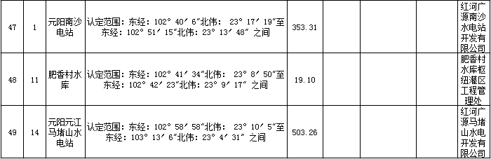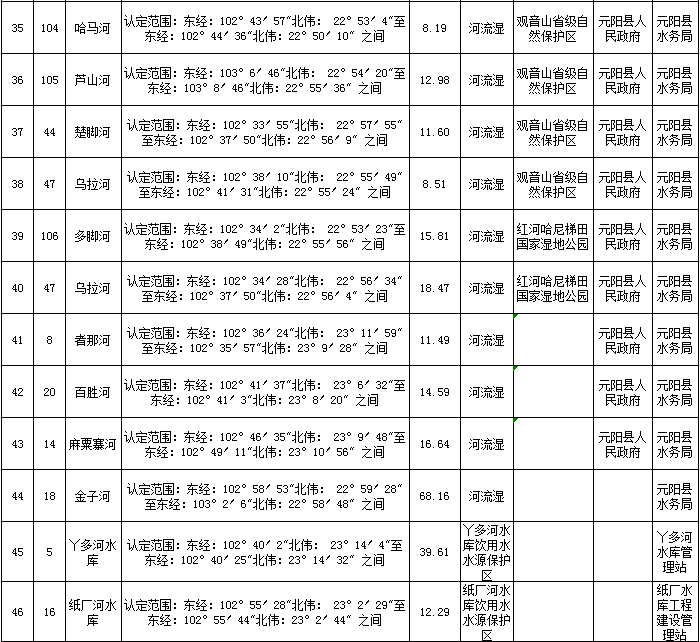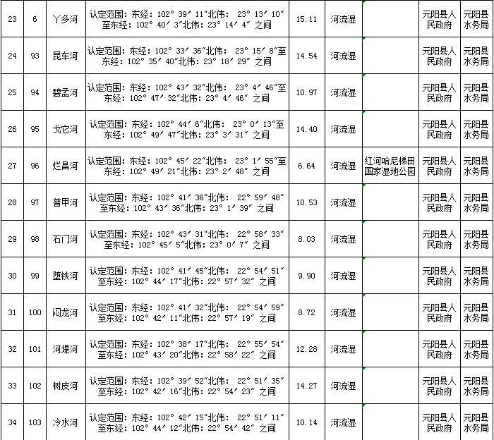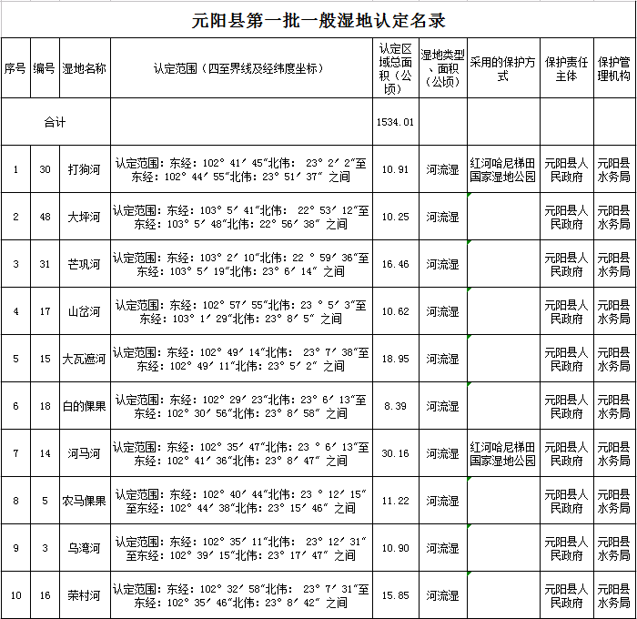 附件:元阳县第一批一般湿地认定情况名录
