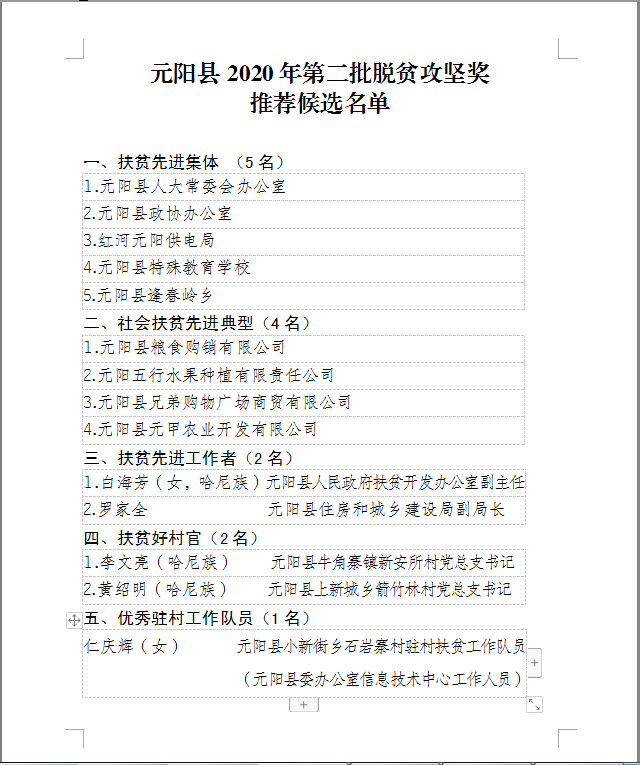 附:元阳县2020年第二批脱贫攻坚奖推荐候选名单