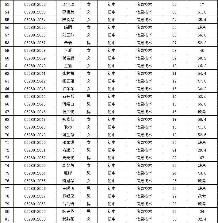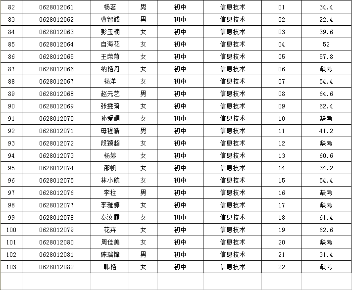 根据《红河州应对新冠肺炎影响大幅增加名额面向全国开展基础教育学校补充招聘优秀高校毕业生的公告》相关规定和要求,经专业知识笔试,现将元阳县2020年应对新冠肺炎影响大幅增加名额面向全国开展基础教育学校补充招聘优秀高校毕业生专业知识笔试成绩予以公示: