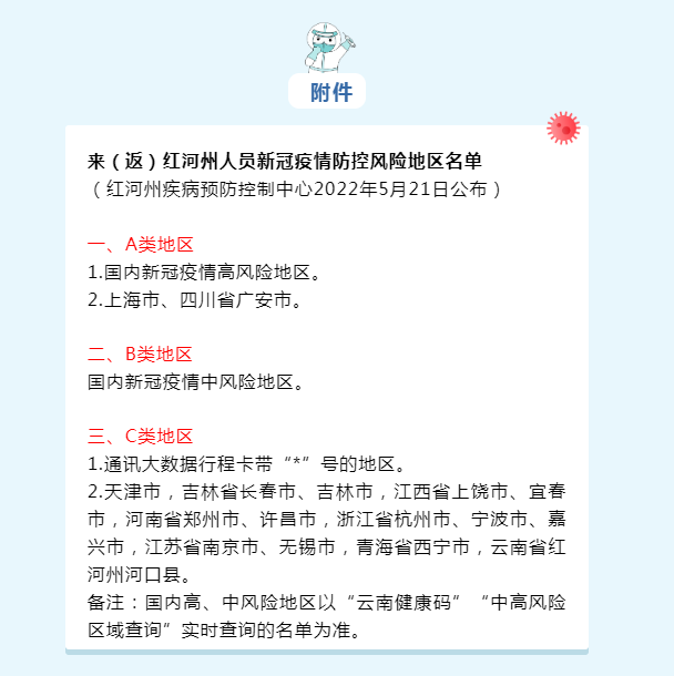 附件:来(返)红河州人员新冠疫情防控风险地区名单(2022年5月21日)