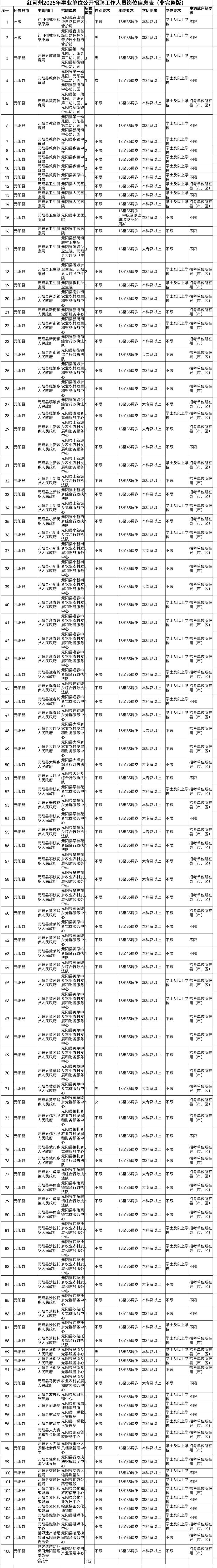 招聘岗位由招聘单位编报,招聘专业、学历等与岗位资格条件相关的问题,由招聘单位和主管部门负责解释。具体详见《红河州2025年事业单位公开招聘工作人员岗位信息表》(附件1)。其中: