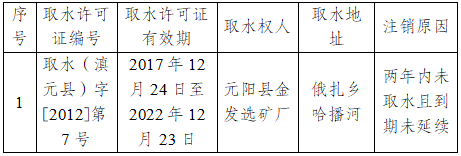 自本公告发布之日起,被注销取水许可证的取水户如有取水,视为无证取水。如有异议,在7个工作日之内,将有关情况反馈到元阳县水务局,逾期视为无异议。