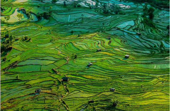 五月的元阳哈尼梯田,绿意盎然,新插的秧苗随风摇曳。在这个充满生机的季节,世界文化遗产元阳哈尼梯田景区迎来了旅游高峰,民众出游热情高涨,共同见证了这片古老梯田的繁荣与活力。