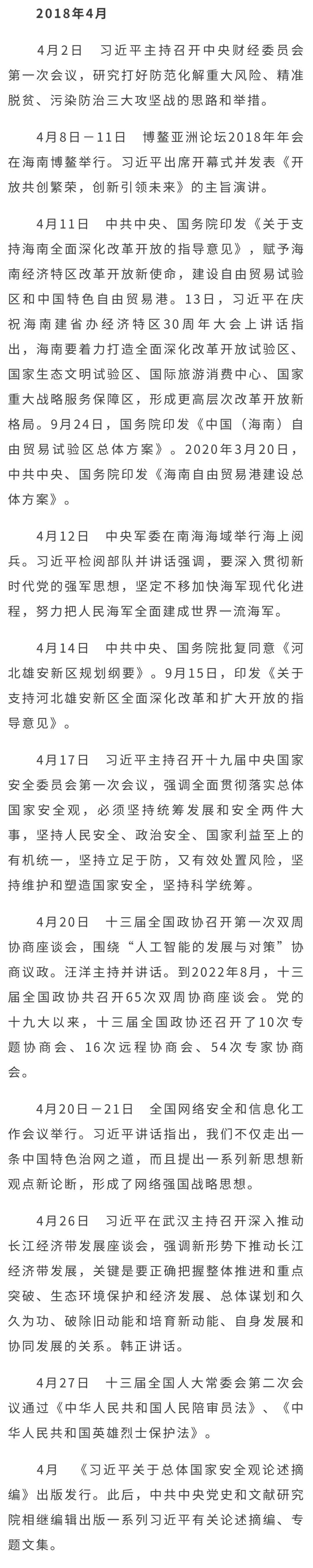 编者按:为迎接中国共产党第二十次全国代表大会胜利召开,中共中央党史和文献研究院编写了《党的十九大以来大事记》。党的十九大以来,以习近平同志为核心的党中央统筹中华民族伟大复兴战略全局和世界百年未有之大变局,团结带领全党全军全国各族人民有效应对严峻复杂的国际形势和接踵而至的巨大风险挑战,采取一系列战略性举措,推进一系列变革性实践,实现一系列突破性进展,取得一系列标志性成果,攻克了许多长期没有解决的难题,办成了许多事关长远的大事要事,以奋发有为的精神把新时代中国特色社会主义推向前进。《大事记》集中反映了5年来党和国家事业取得举世瞩目的重大成就。