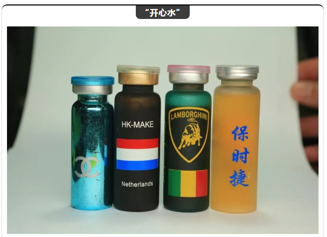 “开心水”也被叫做HAPPY水,是一种无味、透明、液态的毒品,一般含有冰毒、氯胺酮、苯丙胺、MDMA等毒品成分中的一种或者几种。不同案件缴获的 “开心水”中的成分不尽相同,有的甚至存在较大差异。由于“开心水”的成分多为中枢神经兴奋剂,服用后可以兴奋人的中枢神经,具有欣快、警觉和抑制人食欲等一系列作用,重复使用会使人上瘾。“开心水”中毒一般表现为多话、头痛、错乱、高烧、血压上升、盗汗、瞳孔放大、食欲丧失等。如果大剂量使用会引起人精神错乱及思想障碍,有人会出现类似于妄想性精神分裂症的情况,变得多疑并出现种种幻听。