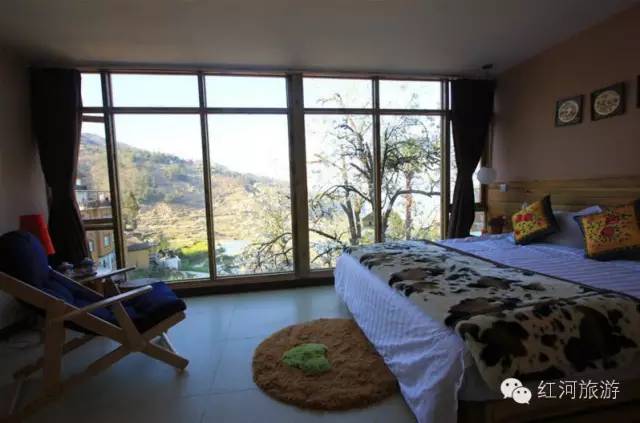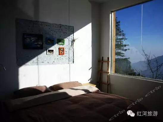 说到房间布置,悬崖客栈绝对算不上最好,屋内装饰简洁。 在这里,一切屋内布置都以拍照为优先,最特别的是,这里的 田景房(180度梯田)和阳台房(200度梯田)均朝东,为了更好地观赏梯田,特地都没安窗帘(但不会被人从窗外窥视到)。