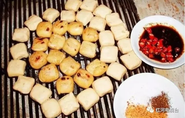 还有烤豆腐,千万不要以为只有石屏和建水出产美味呢豆腐,哈尼人民做呢豆腐更有他的独特之处。