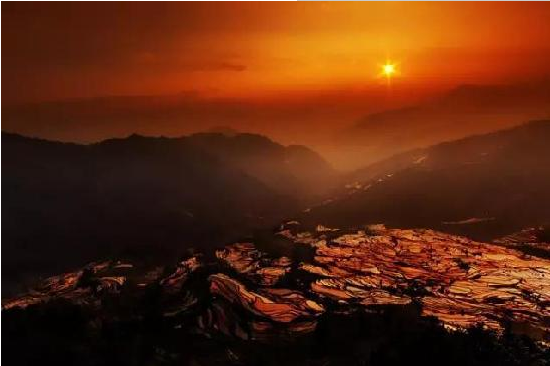 一、坝达景区包括箐口、全福庄、麻栗寨、主鲁等连片14000多亩的梯田,这里是拍日落的最佳地方,冬春季节,下午3点后,大面积的梯田开始反光发亮,便可拍摄梯田了。