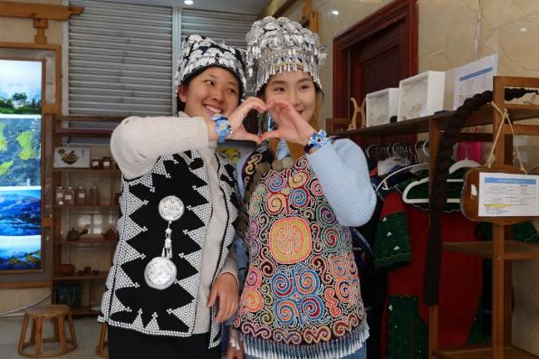 来自开远的游客陈香伶、张梦蝶开心地说:“春节就想来元阳,可人太多了,我们就选择了错峰旅游。一到这儿,就被哈尼族的特色服饰所吸引,还买了超好看的小手环。很有特色。”