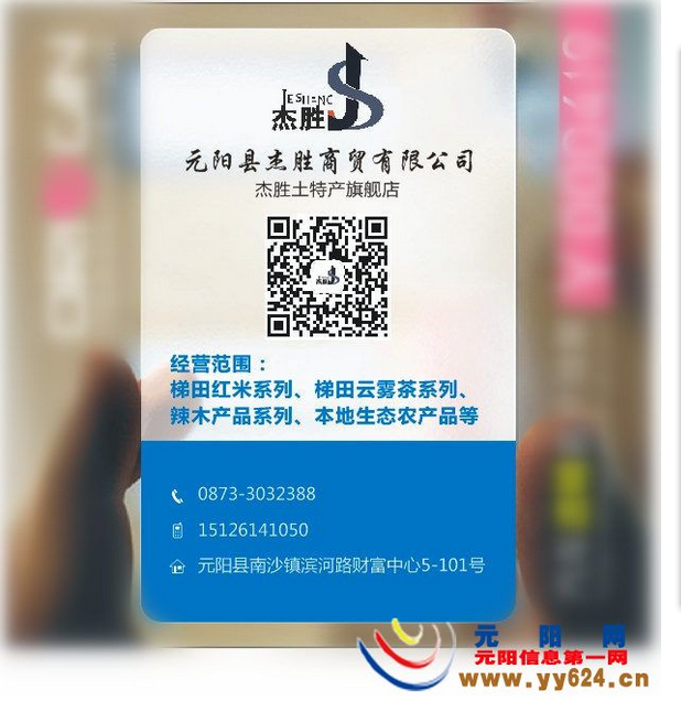 元阳县杰胜商贸有限公司位于世界文化遗产地—红河哈尼梯田元阳县城南沙,是一家以销售土特产、工艺礼品的企业。