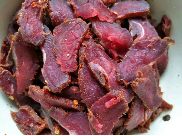 牛肉是中国人的第二大肉类食品,仅次于猪肉。牛肉蛋白质含量高,脂肪含量低,味道鲜美,受人喜爱,享有“肉中骄子”的美称。 牛肉干巴是用黄牛肉腌制而成的肉干;牛肉干含有人体所需的多种矿物质和氨基酸,既保持了牛肉耐咀嚼的风味,又久存不变质。