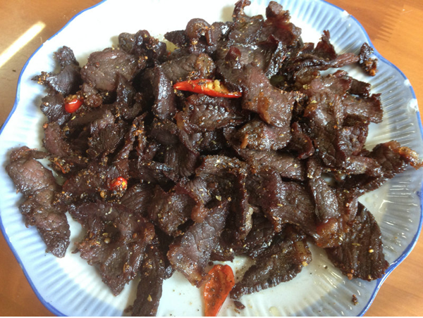 元阳县地处哀牢山南部,境内土地全为山地,无一平川,最低海拔144米,最高海拔2939.6米,相对高差2795.6米,年平均气温24.4℃。从高山到矮山,水土丰富,草地肥美,群众养殖牛羊大多以放养为主,牛肉风味独特。当地人腌制而成的牛肉干巴香味醇厚,风味独特,吃法多种多样,可以炸香吃,煮酸菜吃,用火烤吃,深受消费者喜爱。