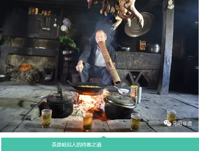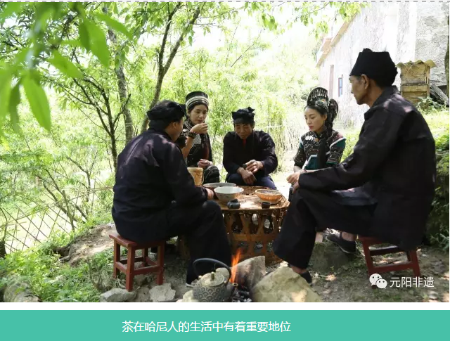 中国是世界茶文化的发源地,而作为中华民族大家庭成员之一的哈尼族则是最早驯化、栽培、饮用茶的民族之一,关于哈尼人发现并饮用茶的起源,在哈尼族地区有这样的传说:远古的时候,有个哈尼小伙子猎获了一头猛豹,他请来寨里的人喝酒吃肉。席间,大家尽兴地跳起了舞,直到通宵达旦口干舌燥,主人便煮了一锅水给众人解渴。当锅里的水即将涨开时,大风吹得树叶纷纷落下,树叶随风飘进锅里。大家喝后感到这水比平时的好喝,苦中带甜还有清香,后来就开始用这种树叶煮水喝了。