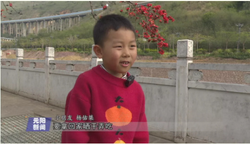 杨佑桀对着记者说,“今天我和外婆一起出来捡攀枝花,捡到了好多,要回家晒干弄吃。”