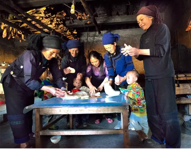 村里家家户户居住的蘑菇房,是哈尼族最为特色的建筑。据说哈尼人以前居住的是土掌房,但是搬到潮湿多雨的红河地区后,在土掌房上用茅草加建了一个坡度在45度左右的四坡顶。而整个房屋建筑看起来也就像蘑菇一样了。哈尼民居没有院落,都是单栋建筑,一般为两三层,底层饲养牲畜存放农具,二楼为生活起居,三楼为粮仓。二楼部分空间为延伸出来的晒台,也可以作为重要的交往空间。村民们四季生活在这里,男耕女织,勤劳朴实。这里的房子全是蘑菇形状的,村内原始宁静,民风淳朴,乡土气息浓郁,是云上梯田里的云上人家。