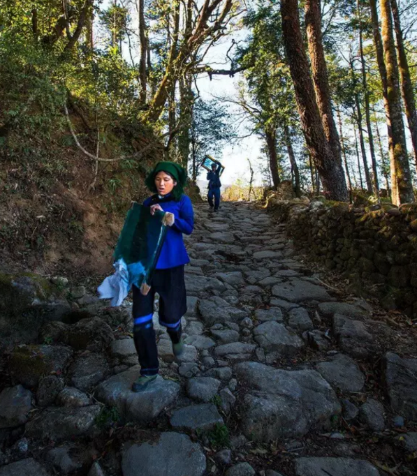 在元阳的哈尼梯田景区,许多村寨尽管现代化的建筑也极力体现了民族风格的设计元素,村落的尺度和格局也模仿了传统村庄,但村民们所居住的已经不是原汁原味蘑菇房了。唯一剩下一个原汁原味的哈尼寨子,就是阿者科。阿者科位于云南省元阳县新街镇爱春村委会,村子紧邻多依树哈尼梯田景区,距离公路有2.5公里路程,全是古朴的青石小路,只能步行进村。该村已入选了第三批中国传统村落名录。