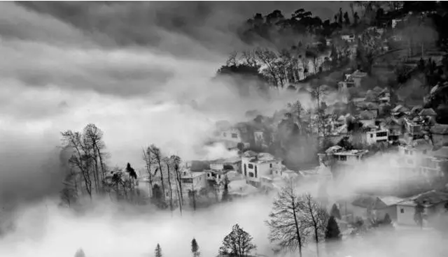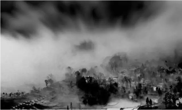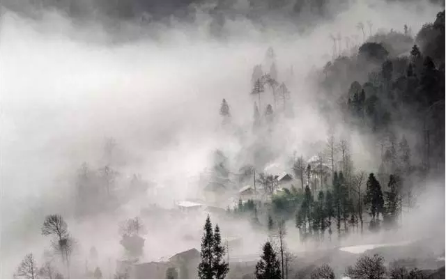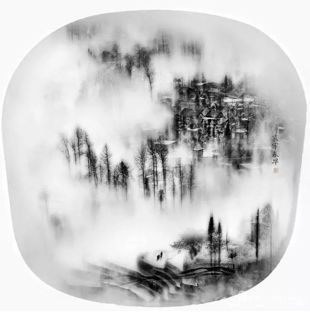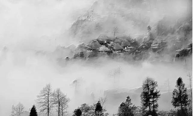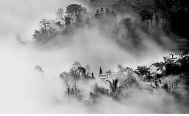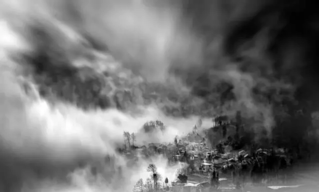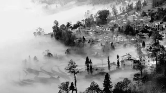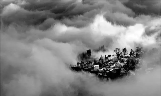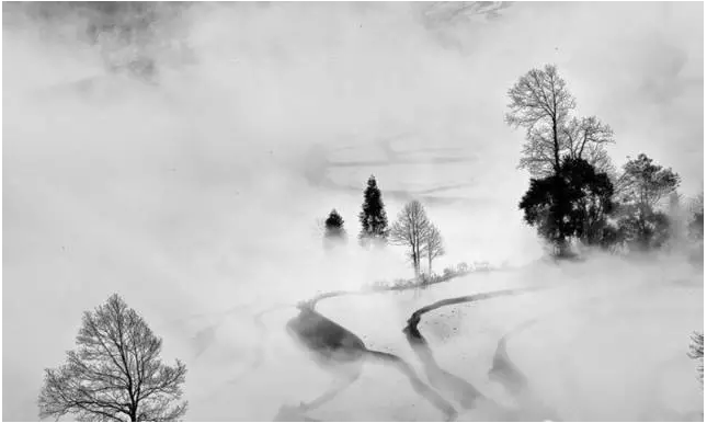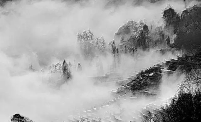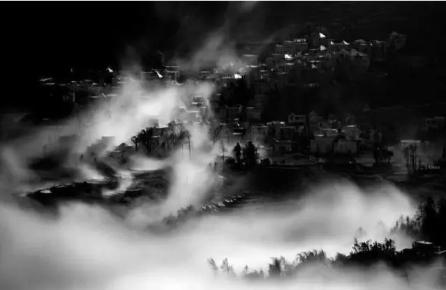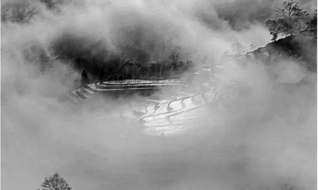 照片中墨色的近浓远淡,产生了丰富的摄影层次及变化,这样的表现形式使哈尼梯田充满了传统的国风之感又不失神秘。