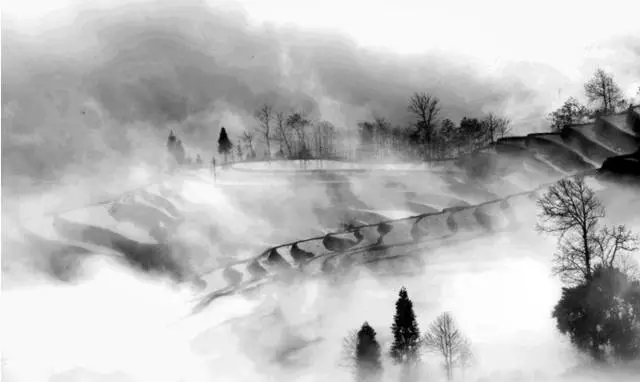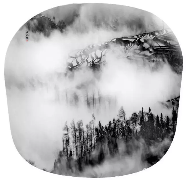 当中国水墨遇见哈尼梯田,又将是怎样的碰撞呢?胡毅一次次深入梯田,拍下哈尼梯田曼妙的身姿,这组“墨韵梯田”就是胡毅以中国画的形式展现出来的。