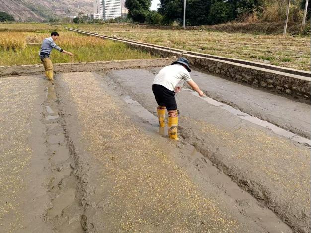 在南沙镇的秧田里,农民们正忙碌着灌水、耙田、撒谷种、放肥料、盖薄膜,一幅幅生动的春耕撒秧画卷正在徐徐展开。