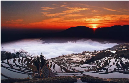 哈尼梯田是最单纯的,而它的美丽也正是来自它的单纯。它单纯,是因为它保持着一成不变的格式;它美丽,是因为它是一面奇异的魔镜,它将天地间每时每刻的变化都投影在自己的镜中,再反射出去时,已改变了原来的模样。或许,是因为它的单纯,才沉淀出万物最美丽的一面。正是因为感受到哈尼梯田博大的单纯,才让我们真正领会到天地间的大美。