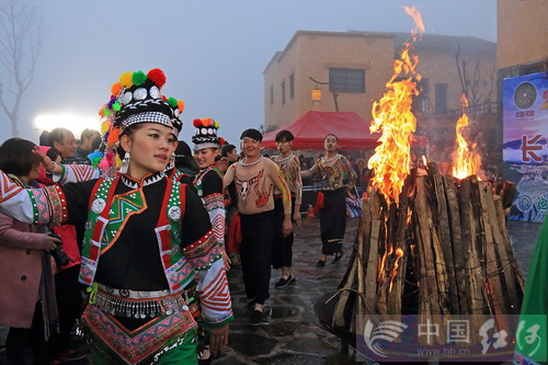 酒席散去,来宾们相聚在小镇广场上,欣赏当地群众带来的原生态民族歌舞,精彩的表演赢得了观众的阵阵掌声。入夜,篝火点燃,中外宾客围在一起,又唱又跳,尽情狂欢,久久不舍离去。