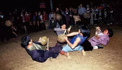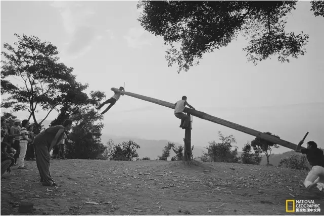 磨秋制作简便,一般是用一根较为坚硬的木头栽在寨边的草坪上,顶端削得稍细一些,当做轴心,再把横木杆从中间凿凹架上即成。关注阿甘公众号(ID:aganzhijia)获取更多元阳民族节庆活动资讯。横杆两端骑坐对等的人数,骑坐的人用脚猛蹬地面,既旋转又升降。骑坐在磨秋上升升降降,来回旋转,悠悠荡荡,十分潇洒,乐趣无穷。围观的人不时发出“哦哨啊!哦嗬嗬……”的助兴、喝彩声,气氛异常热烈、活跃!
