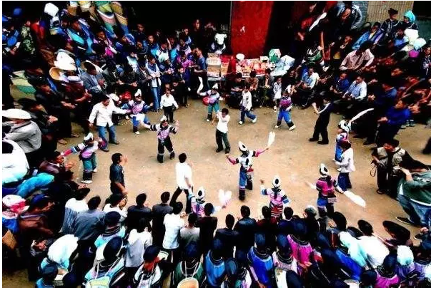 秋房由龙头主持(寨中德高望重的老人),献祖后由龙头推磨秋左右转三圈(意为人畜兴旺、粮食堆成山);秋千要由龙头荡三上三下。三上意为高山竹林茂密;三下意为来年丰收,把害虫赶跑,随后众人才能自由地荡打。