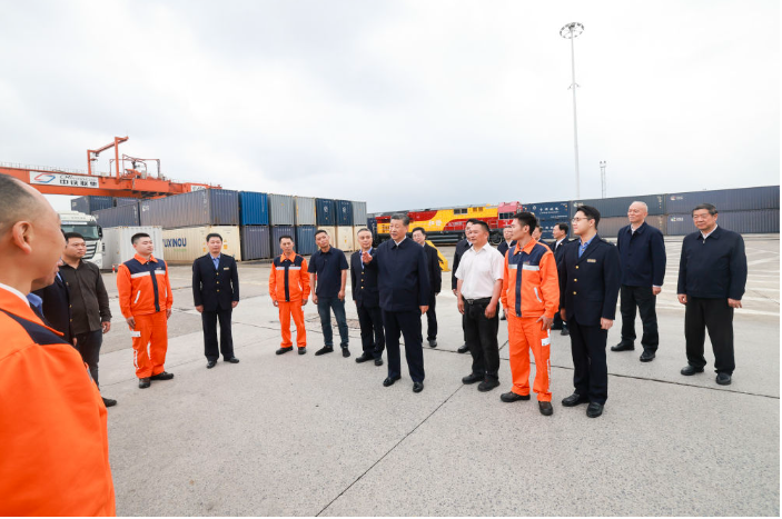 4月22日至24日,中共中央总书记、国家主席、中央军委主席习近平在重庆考察。这是22日下午,习近平在重庆国际物流枢纽园区重庆铁路集装箱中心站考察。新华社记者 岳月伟 摄
