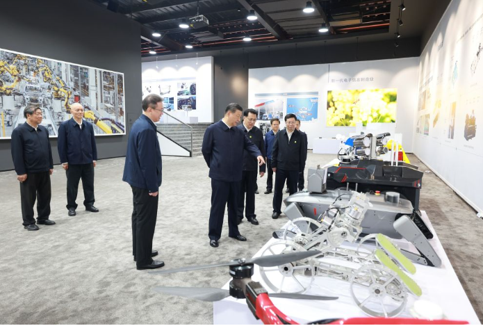 4月22日至24日,中共中央总书记、国家主席、中央军委主席习近平在重庆考察。这是22日下午,习近平参观重庆科技创新和产业发展成果展示。新华社记者 王晔 摄