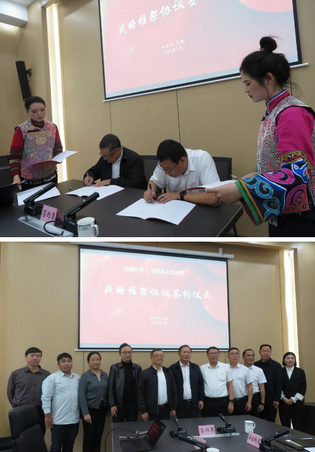 签约仪式上,云南大学民族学与社会学学院博士李丹琦和红河元阳云上乐作稻现代农业发展有限公司负责人白小林作汇报;与会领导、专家学者围绕签约内容先后作交流发言。随后,慕明军代表元阳县人民政府与云南大学签订战略框架协议;攀枝花乡与云南大学、红河元阳云上乐作稻现代农业发展有限公司签订战略合作协议。