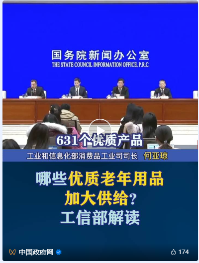 工信部先后发布了两批老年人用品产品推广目录,主要聚焦老年服装服饰、陪护机器人、智能监测仪、多功能护理床等631个优质产品。