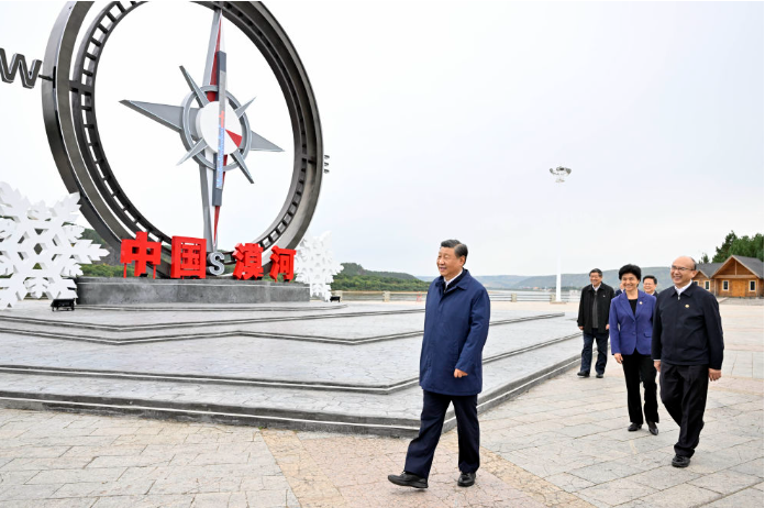 9月6日至8日,中共中央总书记、国家主席、中央军委主席习近平在黑龙江考察。这是6日下午,习近平在大兴安岭地区漠河市北极村考察。新华社记者 殷博古 摄