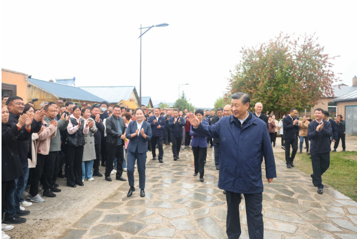 9月6日至8日,中共中央总书记、国家主席、中央军委主席习近平在黑龙江考察。这是6日下午,习近平在大兴安岭地区漠河市北极村村民史瑞娟家的民宿小院考察。新华社记者 鞠鹏 摄