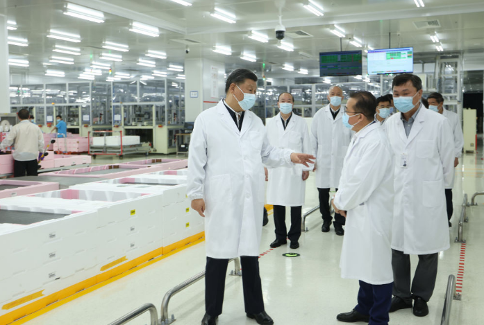 4月10日至13日,中共中央总书记、国家主席、中央军委主席习近平在广东考察。这是12日下午,习近平在乐金显示广州制造基地察看生产组装流程。新华社记者 鞠鹏 摄