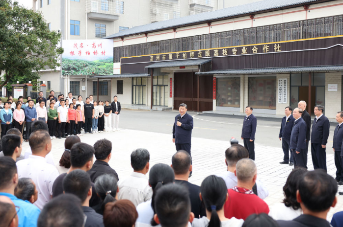 习近平11日来到茂名高州市根子镇柏桥村考察调研。柏桥村种植荔枝约6800亩,是荔枝生产专业村。习近平走进荔枝种植园,了解当地发展特色种植产业和文旅产业等情况,并同现场技术人员亲切交流。随后,习近平来到柏桥龙眼荔枝专业合作社,听取合作社运营和推进乡村振兴等情况介绍。习近平指出,这里是荔枝之乡,荔枝种植有历史传承和文化底蕴,特色鲜明,优势明显,市场空间广阔,要进一步提高种植、保鲜、加工等技术,把荔枝特色产业和特色文化旅游发展得更好。
