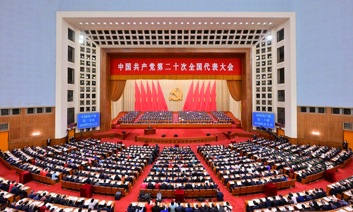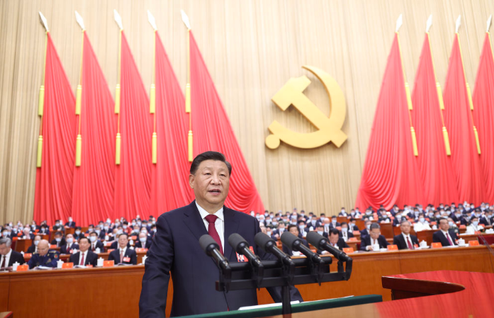 10月16日,中国共产党第二十次全国代表大会在北京人民大会堂开幕。习近平代表第十九届中央委员会向大会作报告。新华社记者 鞠鹏 摄
