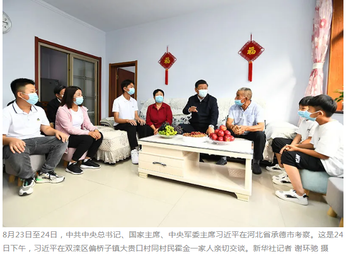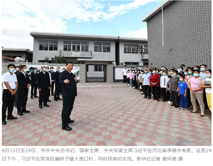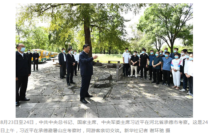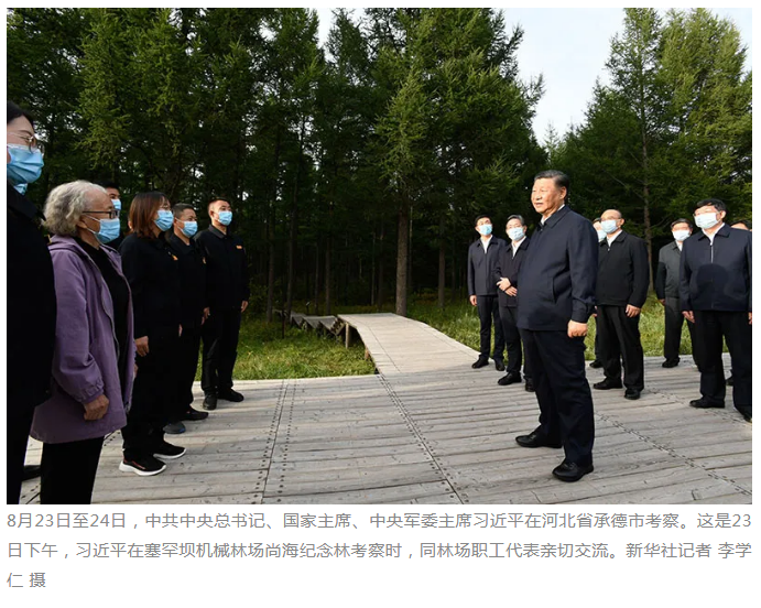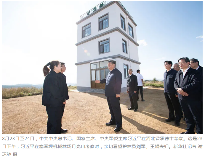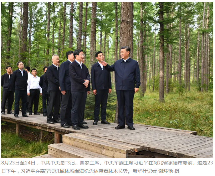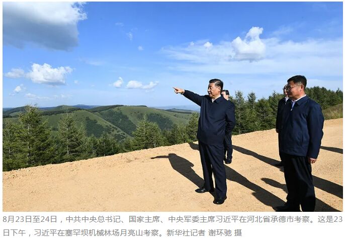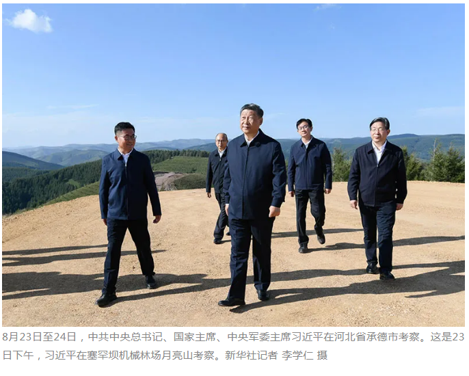 8月23日至24日,习近平在河北省委书记王东峰、省长许勤陪同下,深入国有林场、文物保护单位、农村、社区等进行调研。